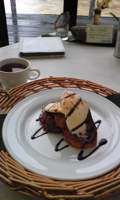 んで、江ノ電に再び乗り込み、目指すは江の島。ロンカフェのフレンチトースト!