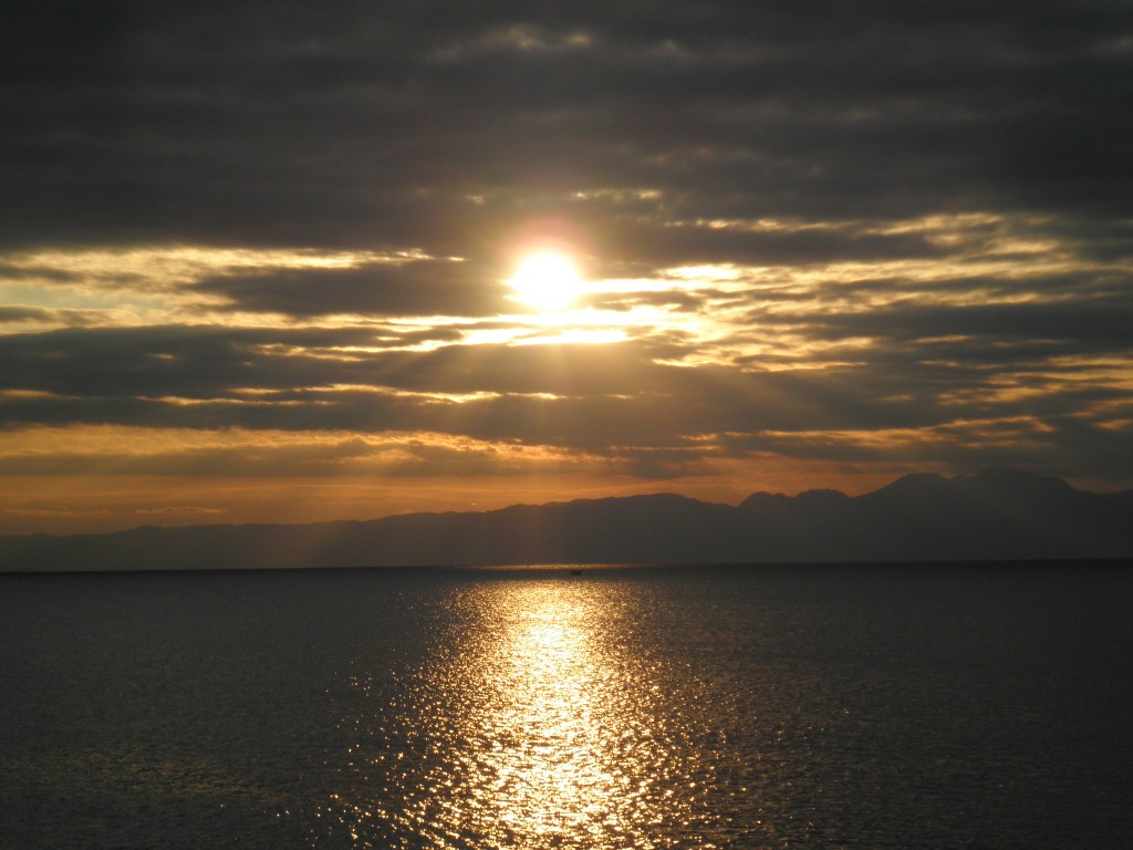 んで、江の島からの帰り。夕日がメチャクチャきれいでした!